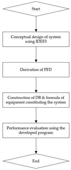 - As a result, the conceptual design process derived from this study is shown in Figure 9. The process proceeds in the order of constructing the system based on the PFD derived through system analysis through IDEF0 and assessing the reliability of the constructed system using the performance formula of the equipment constituting the system. In addition, if a hybrid system that applies both a mechanical system and a hydraulic system is designed based on reliability assessment using a DB of equipment, it is expected that a more seamless conceptual design and reliability assessment will be possible.