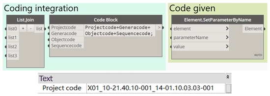 For the later model modification, designers only need to modify and run the corresponding logical parameters in the Dynamo file, and Revit will get the changed model under the drive of Dynamo [29,30]. Using Dynamo visual programming for parametric design can save a lot of time for repeated operations and improve the accuracy of the location of the model.