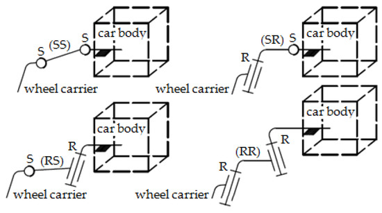 Basic binary chains for non-steered wheel guidance (S—spherical, R—revolute).