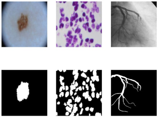 The accurate definition of the skin canceration area, nucleus, and coronary artery boundary is very important for subsequent diagnosis and research. Therefore, to demonstrate the performance of the Residual-Attention UNet++ model, we tested it on two medical imaging datasets, which include skin cancer lesion segmentation and cell nuclei segmentation from 2D images as shown in Figure 10. The PyTorch frameworks were used on a single GPU machine with 16 GB of RAM and an NVIDIA RTX 3070 for this implementation.
