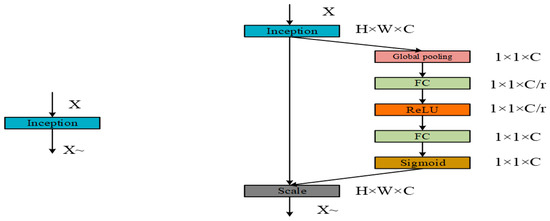 Original Inception module (left) and SE–Inception module (right).