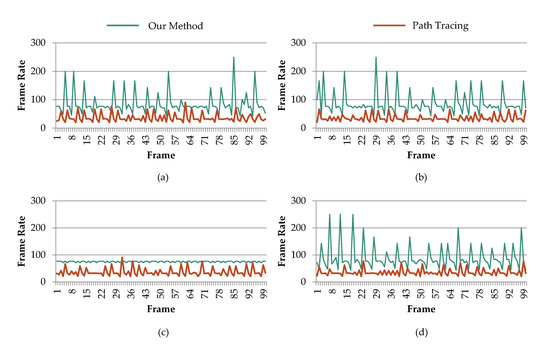 Mesh-based rendering is one of the most widely-used methods. It uses a 3D mesh model to represent the geometric structures of the scene and renders the desired views with various materials of the scenes using the classical illumination methods under the given viewpoint parameters [20]. To further improve the illumination reality of the scenes, some researchers have proposed various global illumination rendering algorithms, such as ray tracing, path tracing, and photon mapping [21]. However, these global illumination algorithms require a lot of computational resources, and the rendering for a single view usually takes more time than the rendering using classical illumination methods. For example, it takes more than two or three hours to render a single indoor scene with a resolution of 2048 × 1024 using a POV-Ray ray tracing renderer [22]. Although the advanced game engine [23] can achieve real-time ray tracing, it also requires the scene-by-scene optimization as well as the support of advanced hardware, e.g., Nvidia RTX.