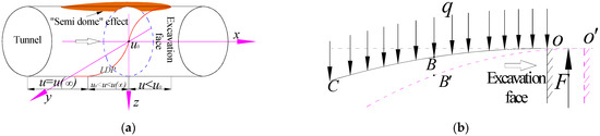 Schematic diagram of spatial effect of excavation face: (a) Semi dome effect; (b) Cantilever beam assumption of excavation face.