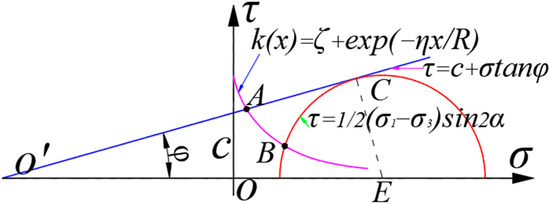 By solving the relationship between the expanded convergence function, shear strength and the intersections and of the Mohr’s circle Equation (Equation (9a)), the fitting parameter expression Equation with parameters can be obtained (Equation (9b)):