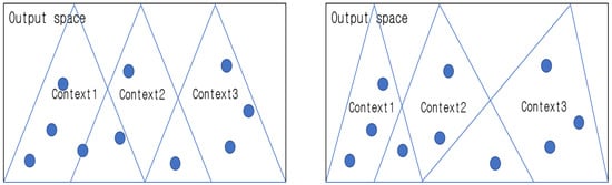 where D denotes the data in the output space. Assuming that there is a context generated considering the characteristics of data in the output space, expresses the degree of the context belonging to the kth data.