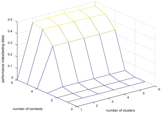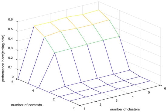 Performance index of the CGK-based fuzzy granular model for testing data (uniform generation of contexts, number of contexts = 6, number of clusters = 4).