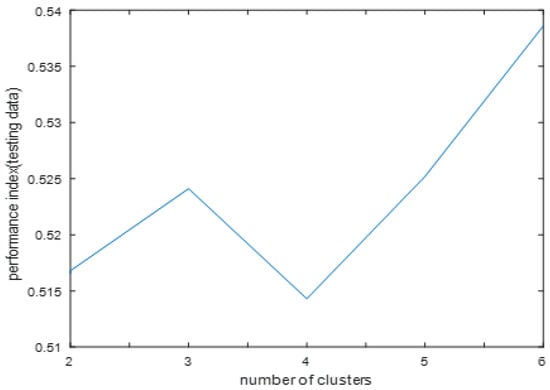 Performance index of the CGK-based fuzzy granular model of the aggregated structure for testing data (uniform generation of contexts, number of contexts = 6, number of clusters = 4).