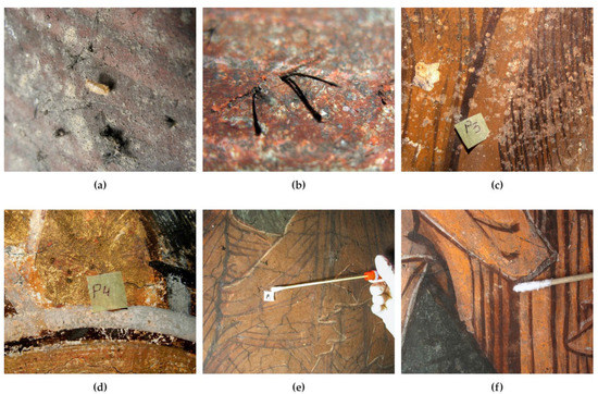 Microbial colonization of either original or restored mural paintings takes place due to these microbes’ ability to use organic and inorganic materials as nutrients. As a result, the biodeterioration process becomes visible through aesthetic and structural changes. Microbial colonization and deterioration processes are enhanced by a wide range of abiotic factors, such as humidity, temperature, nutrients and the chemical composition of the air [6,7,8].