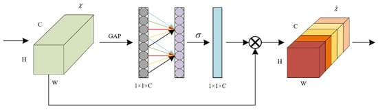 where is a global average pooling operation; f is a 1D convolution operation with 3 × 3 kernel size, which is then activated by the sigmoid function (); and represents element by element multiplication with the original input features.