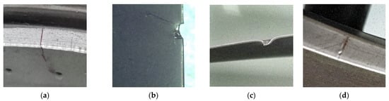 Types of defect. (a) Crack; (b) gap; (c) pit; (d) scratch.