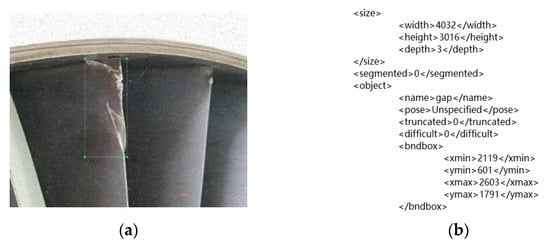Defect labeling example. (a) Labeling box; (b) Xml file.