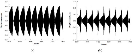 The time-domain curves of the system response under different initial conditions are given in Figure 8. The parameters selected in the calculation process are the same as those in Figure 7, and the frequency is σ = −0.144.