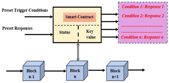 Smart contracts are small computer programs integrated into hardware or software that can execute triggers, conditions, or any specified logic to enable transactions between users and the blockchain network. Though the concept of smart contracts drew attention in the late nineties, the execution of smart contract platforms without any third-party interference has only been possible after the introduction of blockchain [24]. Figure 2 exemplifies a smart contract’s basic operational structure.