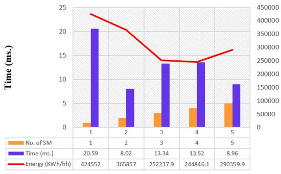 To analyze the time cost of each smart meter, from the collected dataset archive, “halfhourly_dataset” was chosen. This file has 112 blocks of electricity usage data of 112 unique smart meters. Each of these blocks contains a total record of 10,48,576 rows and three columns, namely, LCLid (meter ID), tstp (timestamp), and energy (measured in kWh/hh). For convenience, we took the first five blocks: Block1, Block2, Block3, Block4, and Block5 for the experiment, which collected a total record of 424,552 kWh, 365,857 kWh 252,237.9 kWh, 244,846.1 kwH, and 290,359.9 kWh, respectively, over a period of 30 min.