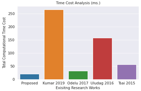 Comparative performance analysis between proposed and existing works in terms of time cost analysis [8,9,12,13].