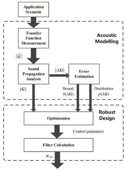 The perturbation part describes the transfer function variations due to possible errors. Based on the model, two strategies are provided. One is to estimate the bound of ΔG and achieve good performance in the worst acoustic situation. The other is to estimate the probability distribution of ΔG and establish the mean cost function to improve the average performance over all possible cases. Through such robust control, the ability of the system to resist disturbance is improved.