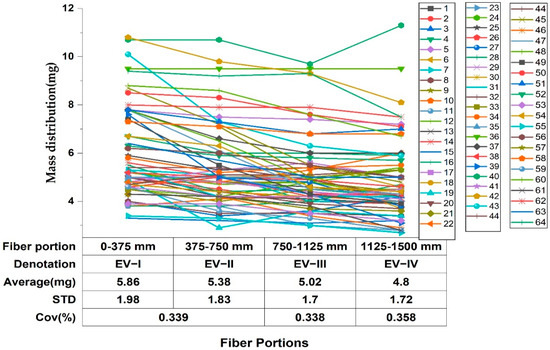 Enset bundle fiber portion along the length versus mass in grams. STD—standard deviation; CoV—coefficient of variation.