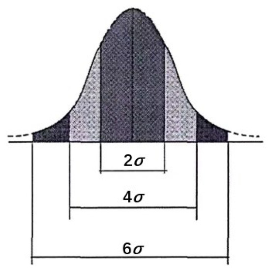Generally, the stress amplitude and average stress of the random response vary randomly. Steinberg [14] proposed a three-interval method based on Gaussian-distribution and Miner linear cumulative damage theory to analyze the fatigue life from the perspective of probability. The stress can be divided into three ranges in terms of probability, as shown in Figure 2 and Table 1.