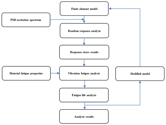 Zhang et al. [8] established an accurate parametric finite element model and obtained mode frequencies and shapes by solving dynamics equations of aviation airborne equipment. Li et al. [9] proposed an algorithm that integrates Karhunen–Loeve expansion (KLE) and finite element method (FEM) to perform the random vibration analysis of complex dynamic systems excited by stationary or non-stationary random processes. Zhang et al. [10] proposed a method combining random vibration spectrum analysis, dynamic strength reliability theory, and sensitivity analysis. The dynamic strength reliability and parameter sensitivity of the aircraft fuel pipeline system are analyzed using this method. This method can also be used for the dynamic strength reliability evaluation of engineering structures.