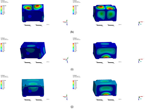 The first 10 order modes of the electrical control box. (a–j): 1 to 10 mode.