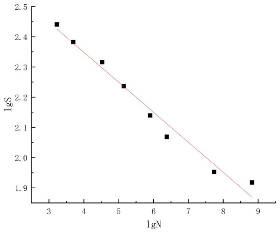From Equation (15), the lgS-lgN curve of the material was obtained, as shown in Figure 12.