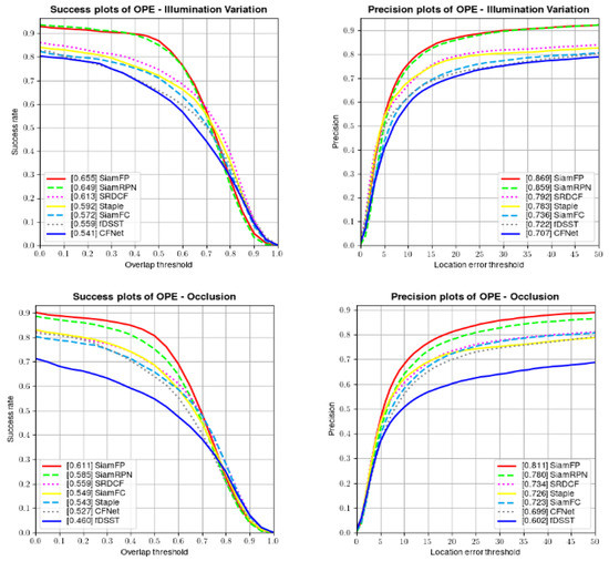 The Success Plots and Precision Plots on OTB2015 Dataset with Three Attributes.