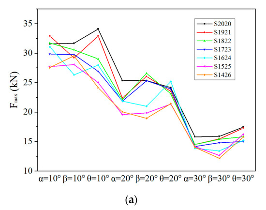 The results of Fmax, SEA, and CFE with various loading angles and patterns are obtained by simulations, as shown in Figure 12. For the index of Fmax, the values decrease as the loading angle increases. When the tubes are under certain loading angles, the loading patterns and the plate thickness configuration can have an effect on the Fmax. For example, the Fmax of S2020 is increased from 31.574 kN with to 34.096 kN with ; however, the Fmax of S1822 is decreased from 31.7314 kN with to 28.9937 kN with . The Fmax of the tubes under are considerable close. This indicates that the loading patterns have different effects on different tubes.