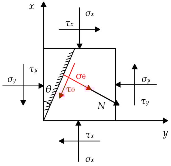 When the composite timber column is inclined, the stress on any inclined section can be obtained according to the unidirectional stress state at any point in the interface. The stress distribution on any inclined section is shown in Figure 3.