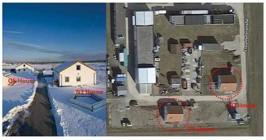 Regarding the outcome of the Annex 58 project—a pair of houses (Figure 5), i.e., N2 and O5, located at the test site of the Fraunhofer Institute for Building Physics, Holzkirchen, Germany, was fully monitored with research-grade equipment, and data were made available for the public. Therefore, the Twin Houses were selected in the case studies due to the transparency and the quality of monitoring data.