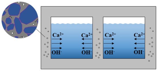 The main process of calcium dissolution of cement-based materials can be expressed by Equations (1) and (2) [13].