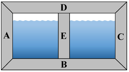 A culvert project is often arranged in sections. The cross-sectional direction of the culvert is the Y direction, along the culvert body is the X direction, and the vertical direction is the Z direction. Assuming that the sections are along the same direction as the dissolution damage, the location of the damage is located along the X direction in the central section of the culvert sidewall, cover, and bottom plate. The culvert is divided into five damage areas (A~E), as shown in Figure 5.