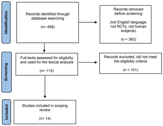 Considering the papers containing the terms “exercise” and “rehabilitation”, we first selected 28 studies. After the exclusion of works that did not meet the eligibility criteria, 14 studies were included in the final scoping review (Table 2).
