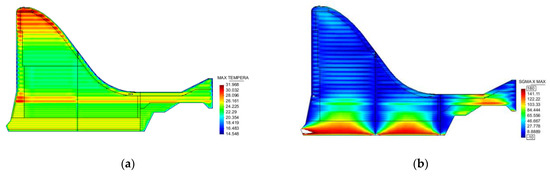 Temperature and stress envelop diagrams of dam middle section with longitudinal joint: (a) temperature envelop diagram of the middle section (Unit: °C); (b) stress along river direction of the middle section (Unit: 0.01 MPa).