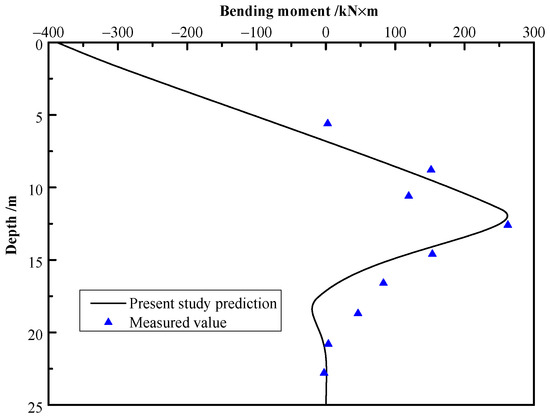 Hence, the predictions of the bending moment for each segment of the pile shaft yielded by the proposed approach in this work is illustrated diagrammatically in Figure 8, along with the site measured results reported by Peng et al. [34]:
