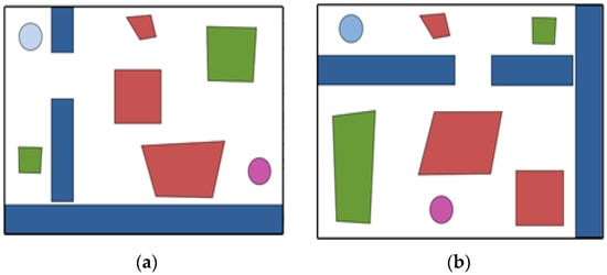 In the first experiment, a cooperative experiment was conducted in pairs with the 2D screen-based environment authoring tool and the proposed sketch-based environment authoring tool. Users were asked to design both types of environments, referred to as A type and B type, with two different environment authoring tools. Figure 12 shows the two target environments.