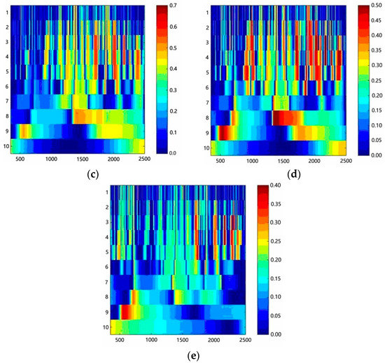 Based on the wavelet coefficients obtained by the CWT, the sensitive wavelet energy coefficients were screened, and the results are shown in Table 6.