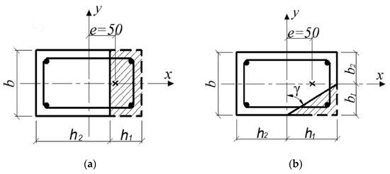 The influence of the cross-section size [7] on the bearing capacity of a normal section of reinforced concrete column obtained using a theoretical analysis and generalization of experimental data was also considered. However, based on the studies highlighted in the article, the bearing capacity was greatly influenced by the combined effects of cross-sectional shape and flexibility of the columns with a noncentral load application [8,9], as well as lower slenderness limits depending on the strength, stiffness, boundary conditions, and forces acting on the column. In their paper, the authors of [10] presented simplified analytical expressions for the lower slenderness limits of symmetrically reinforced rectangular columns.