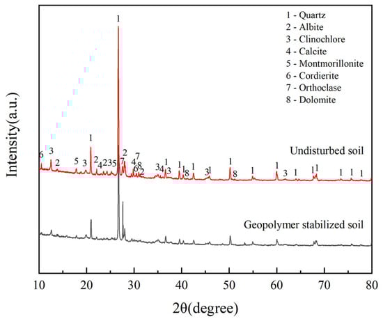 XRD patterns of undisturbed soil and geopolymer-stabilized soil.
