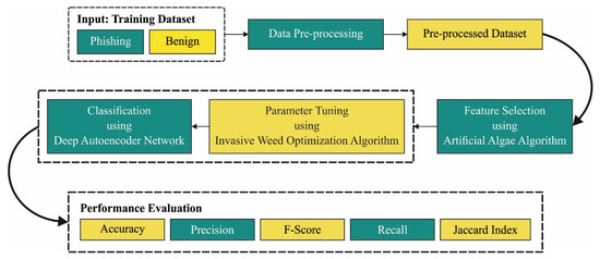 This study presents an optimal deep autoencoder network based website phishing detection and classification (ODAE-WPDC) model. The proposed ODAE-WPDC model applies input data pre-processing at the initial stage to get rid of missing values in the dataset. Then, feature extraction and artificial algae algorithm (AAA) based feature selection (FS) are utilized. The DAE model with the received features carries out the classification process, and the parameter tuning of DAE technique is performed using the invasive weed optimization (IWO) algorithm to accomplish enhanced performance. The IWO is a derivative-free real parameter optimization technique that mimics the ecological behavior of colonizing weeds. The performance validation of the ODAE-WPDC methodology was tested utilizing benchmark Kaggle repository. In short, the paper’s contributions can be summarized as follows.