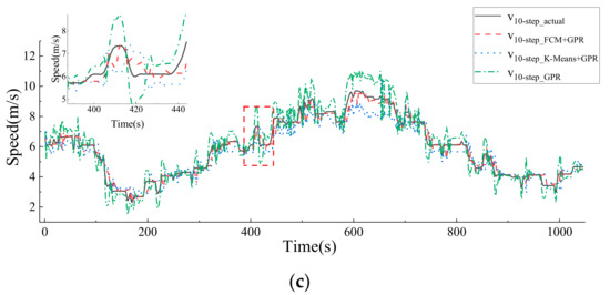 The GPR model takes the speed data of 5 historical sampling steps as input, and the results of the FCM-based driving intention classification introduced in the previous section are used as the result weights of each GPR model to finally predict the speed of the future 1 step.