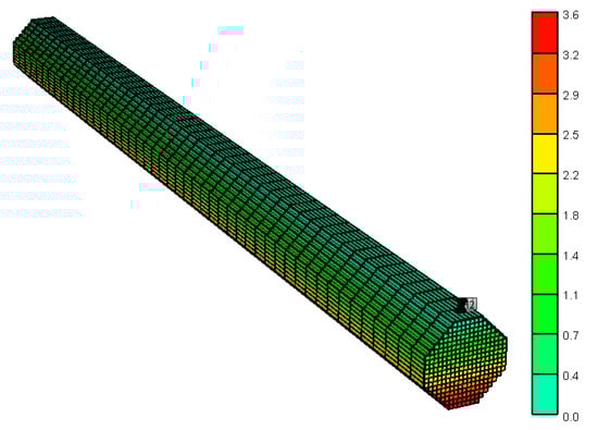 In this study, CMG-STARS software was used to develop a numerical model to simulate the H2S generation during the one-dimensional CSS experiment. According to the size of the one-dimensional sandpack model, a one-dimensional numerical simulation model was established, as shown in Figure 5. Reasonable grid size and step size can not only approach reality, but also improve the operational speed of the grid model. Therefore, the one-dimensional numerical simulation model included 48 × 19 × 19 (17328) grids, and the grid size was 1 cm (X) × 0.2 cm (Y) × 0.2 cm (Z). The reservoir properties (porosity, permeability, oil saturation) were obtained from the experimental data, and Table 4 shows the other reservoir and rock properties used in the model.