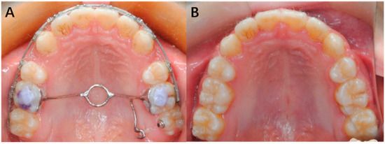 - Mehta, D.F.; Patel, D.R.; Kharadi, D.L.; Mehta, S. A Modified Transpalatal Arch for Correction of Bucally Placed Maxillary 2nd Molars: Non-Compliant Mechanics. Iosr J. Dent. Med. Sci. 2014, 13, 24–26. [Google Scholar] [CrossRef]