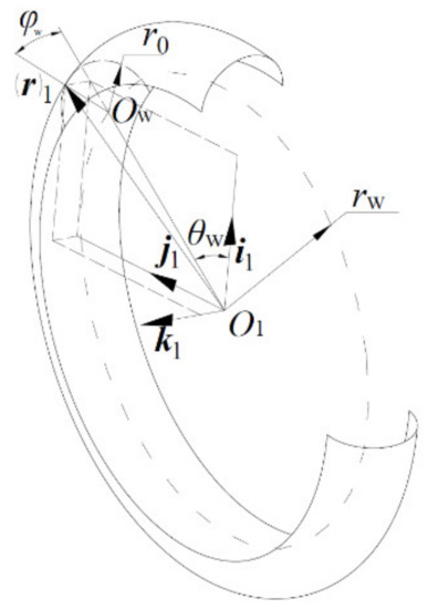The wheels on both sides need to be kept tangent to the ground while tilting. As such, the proposed model uses M/C circular section tires [20], as shown in Figure 2, wherein Ow is the center of the tire section. The radius of the tire section is r0. The tire radius of Ow is rw. Taking the left wheel as an example, the mathematical model of the tire tread is established by the application of the circular vector function [21]. When modeling, the tire tread is assumed to be an infinite rigid.