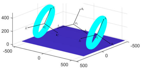 The vehicle coordinate S5 (O5; i5, j5, and k5) is then established on the frame. O5 is taken as the origin. The point k5 is along the O5C direction, j5 is along the O5O4 direction, i5 is the intersection of PH and LSPV, and the direction of i5 is consistent with that of j4. In the S5, r, n and d can be expressed as: