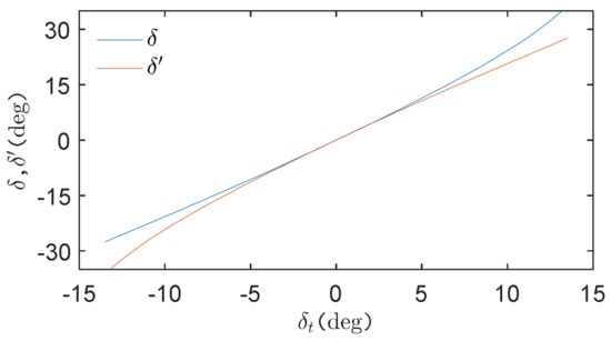 In order to make δ′ and δ satisfy the ASC [16] when the vehicle steers left: