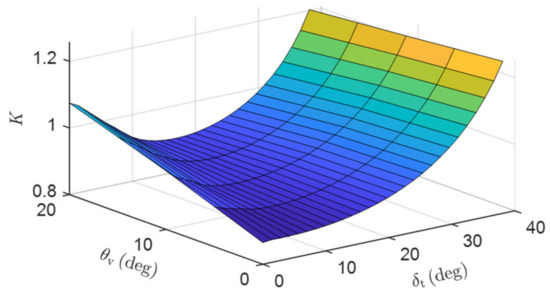 When 0 deg < θv ≤ 20 deg and 0 deg < δ ≤ 40 deg, the SGCR of the vehicle is 0.87 ≤ K ≤ 1.25. This is within an acceptable range (in low-speed vehicles, K should be in the range of 0.4 ≤ K ≤ 1.6) [22].