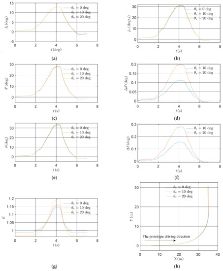 Taking the prototype steering left as an example, the prototype drives on the road with the same δt and v, but different θv, where the speed is v = 25 km/h. The results of the experiment are shown in Figure 10.