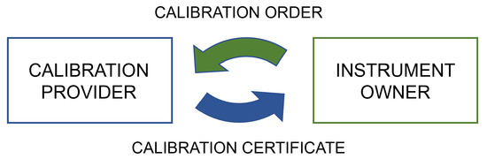 In general, calibrations are based on bilateral relationships between a service provider and an instrument owner, i.e., the customer. The process begins with a calibration order or request issued by the instrument owner. If the calibration is to be performed in an external laboratory, the instrument needs to be delivered as well. Upon receipt of the request and instrument, the calibration is performed and results are analyzed by the service provider based on the requirements defined by the customer. If an instrument does not perform within its tolerance, it will need to be adjusted or repaired, after which it must be recalibrated. The calibrations before and after any significant changes made to the calibrated instrument are commonly referred as “as-found” and “as-left” calibrations, respectively [11]. To report the results of the calibration and a statement on the conformity of the instrument as required by the customer, the calibration vendor issues a calibration certificate, sends it to the instrument owner, and returns the instrument. At the receiving end, the calibration certificate is inspected to make sure it is correct and that it meets the requirements that have been defined for the calibration process. Once the certificate is deemed to fulfill the requirements, the data are imported into a calibration management system (CMS).