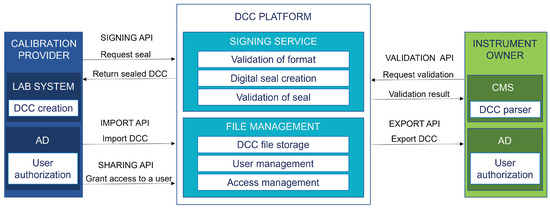 The calibration process should be considered as a closed-loop process between the instrument owner, i.e., calibration customer and calibration service provider. Thus, fully standardizing the communication and ensuring interoperability in wider industrial use requires also a format for the digital calibration request (DCR) in addition to the DCC. However, in the POC, the implementation concentrated only on the use of the DCC as its development has progressed further. Figure 4 shows a simple illustration of the communication between the instrument owner and calibration provider.