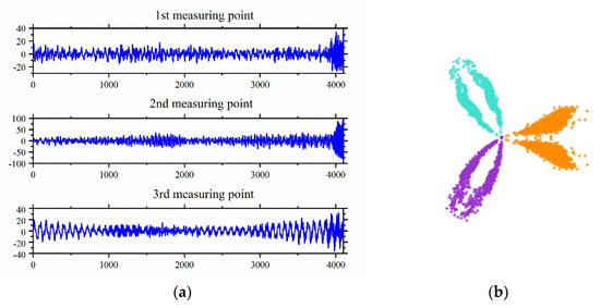 The SDP image under three measuring points; (a) Original vibration signal; (b) SDP image conversion.